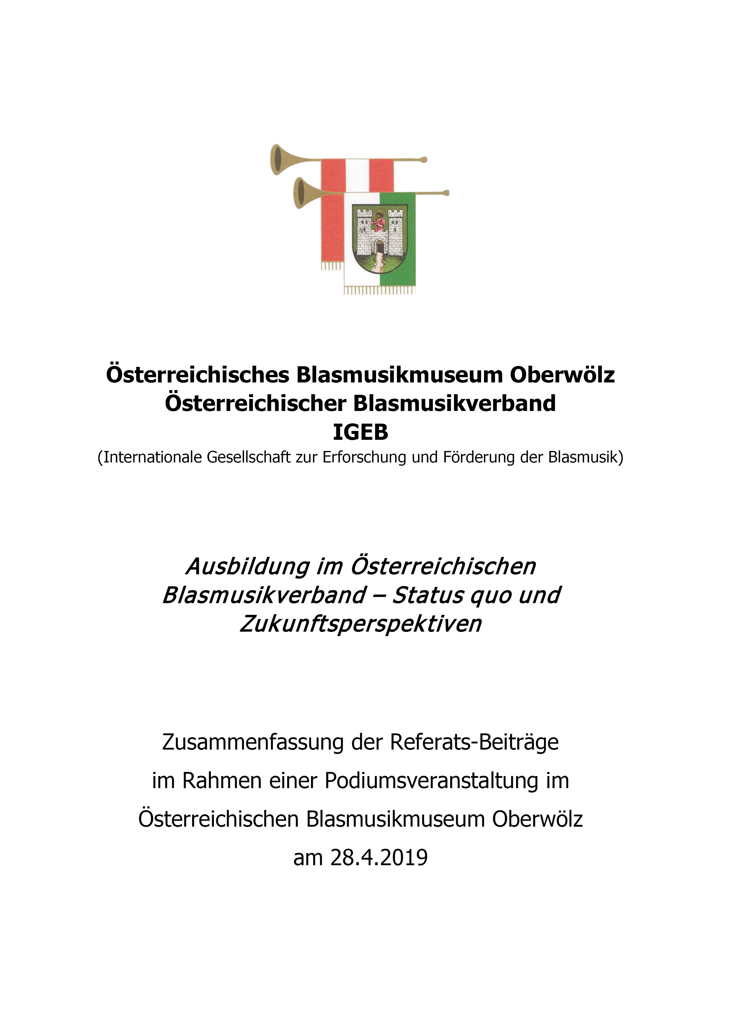 Rudolf Gstättner u. a.: „Ausbildung im Österreichischen Blasmusikverband – Status quo und Zukunftsperspektiven“